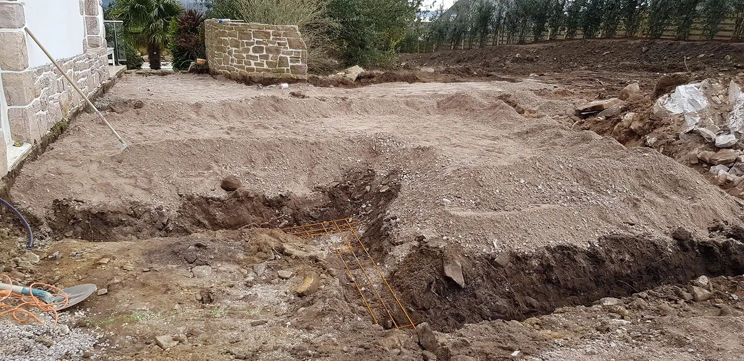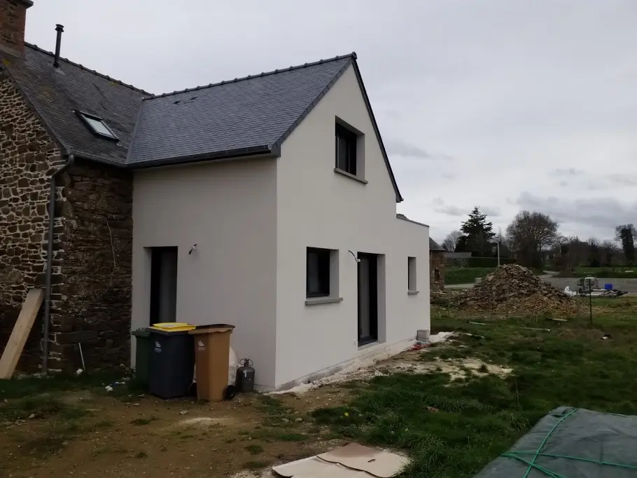 Le projet des clients était la rénovation complète d'une maison qu'ils venaient d'acquérir (avec un petit agrandissement). Le but était de créer une grande pièce de vie avec cuisine, une chambre, une salle d'eau et un WC au rdc et 2 chambres à l'étage.